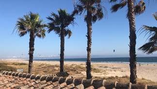 Das Hotel "Dos Mares" liegt etwa 6 km vor Tarifa, an der N-340. An der "Playa Los Lances". Hier gibt es weissen Sand, graue Steine und herrliche Wellen im Wasser. Je nach Wetter wechselt die Farbe des Wassers. Klar und blau bis karibik-türkis ... und am Horizont liegt Marokko - zum Greifen nah. Gerade sitze ich in der Bar "Dos Vientos" des Hotels, höre chillige Musik und auf dem Wasser tanzen die Kitedrachen im Wind. Das Meer trägt heute weisse Schaumkrönchen und die Sonne lässt die Palmenblätter dazu glänzen. Wo sollte es einen besser Platz zum Schreiben geben. Durch die offenen Türen weht der warme Sommerwind hinein und trocknet meine nassen Haare. Dazu einen wirklich guten Café solo. Das Leben kann so einfach sein!